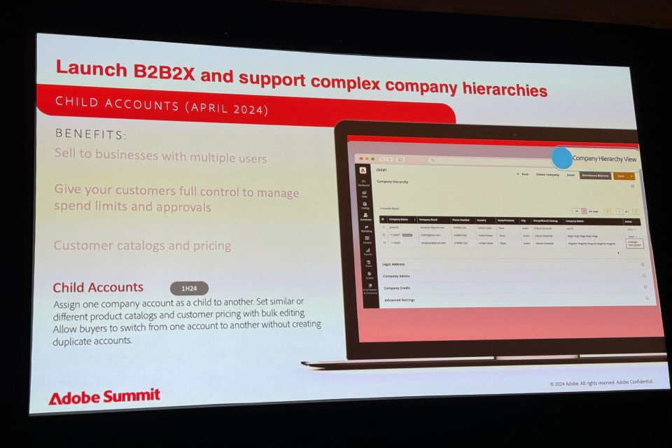 Due in June 2024, the upcoming enhancements in Adobe’s B2B suite include improved company account management and quote system capabilities. These upgrades are set to provide a more flexible and user-friendly environment for B2B commerce, emphasising customisation and efficiency.