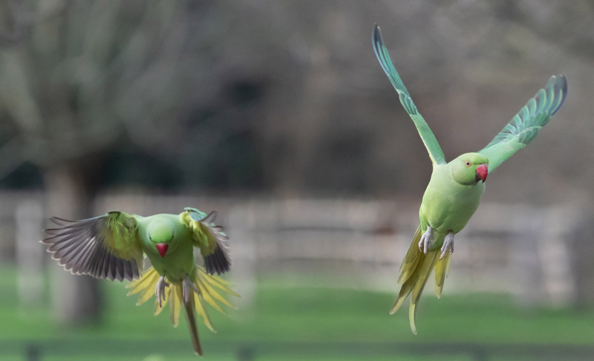 I decided to take a detour through the park on my way from Paddington Station to my hotel, and I was pleasantly surprised when a bright green flock of them flew right across the path in front of me!
