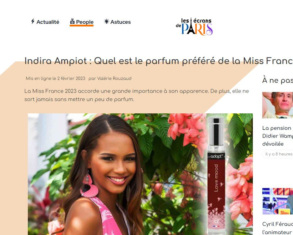 Indeed, in most of her interviews, published in all the French tabloids and news websites, the 2023 Miss France Indira Ampiot declared that one of her favourite fragrances is one from Adopt which cost less than €10.