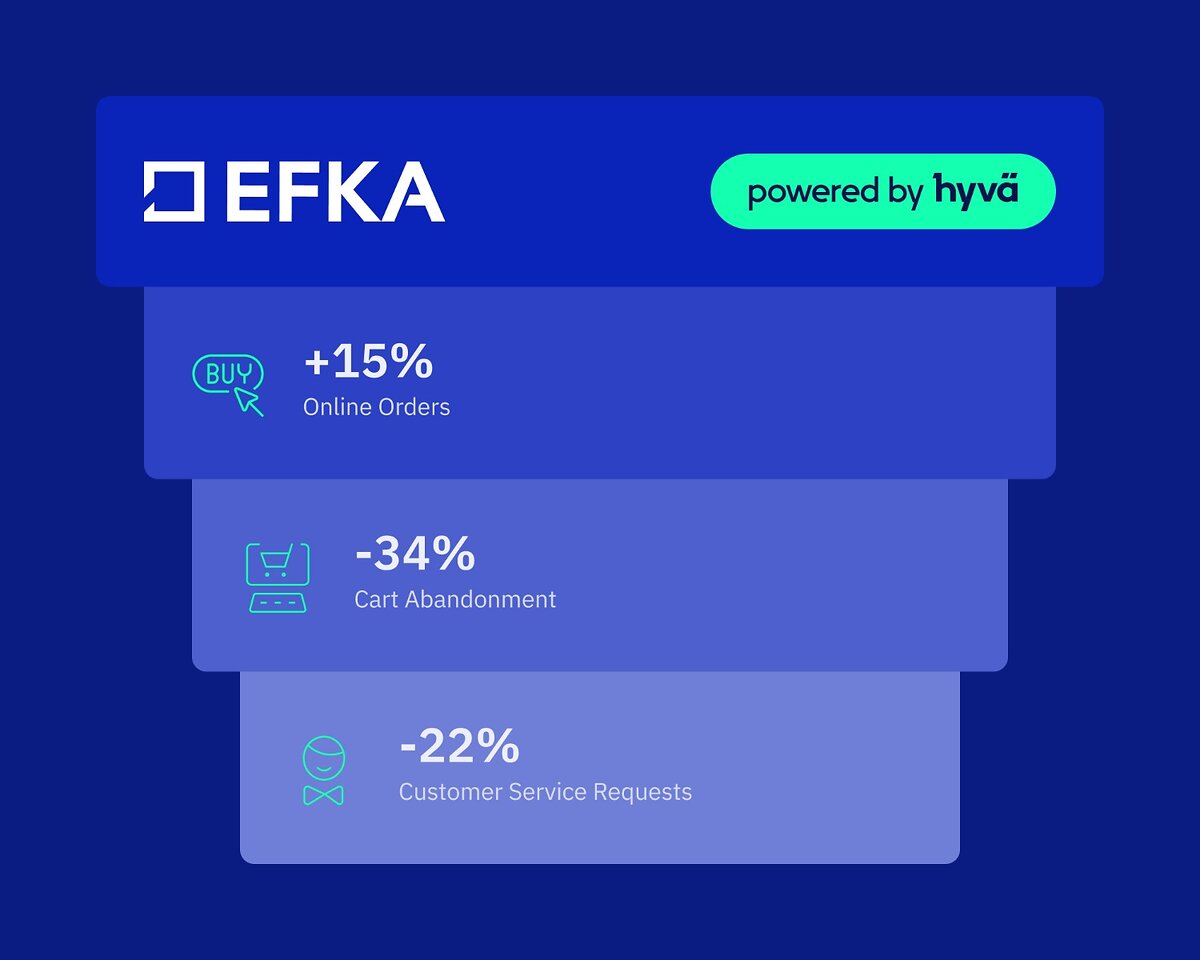 EFKA’s diverse product range required handling various exceptions related to products, customers, and shipping methods. Hyvä’s flexibility allowed these exceptions to be managed efficiently, resulting in a 22% decrease in customer service inquiries.