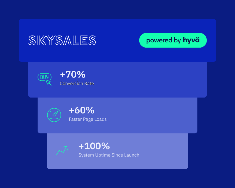 Magneto built Skysales on Adobe Commerce, paired with Hyvä Theme and Hyvä UI for a lightweight, blazingly fast frontend. They integrated everything Skysales needed: custom ERP, payment gateways, analytics, and performance monitoring tools, without the usual performance penalties.
